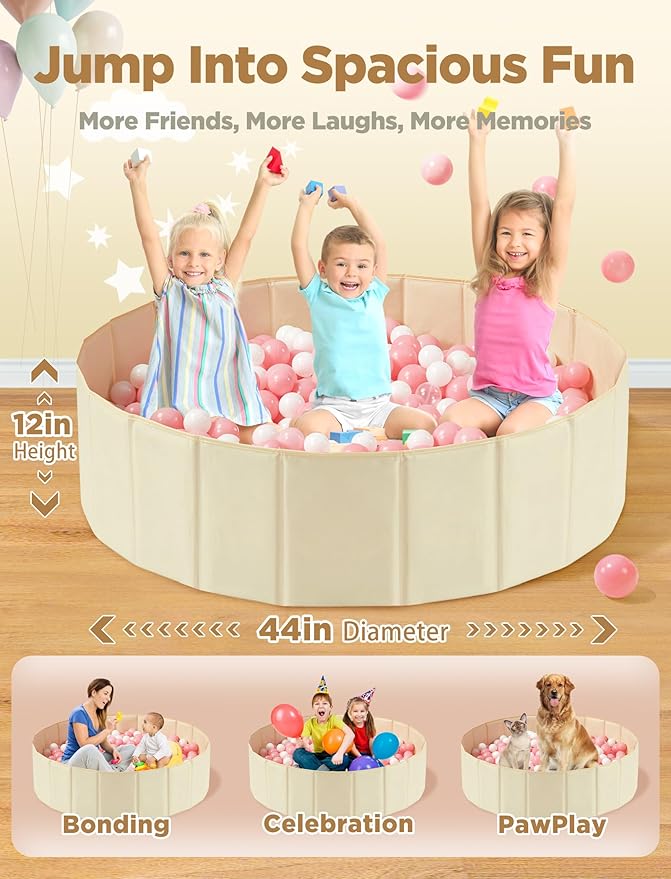 Large Ball Pit for Toddlers - 44 in Baby Ball Pit with Pop-Up Playmat, Portable and Foldable Kids Ball Pit, Dog Play Pit, Indoor and Outdoor Use, Hold Over 800 Balls, Balls Not Include
